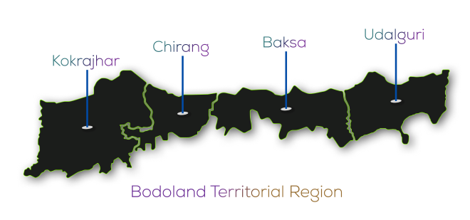 “२००३ साली बोडो टेरिटोरिअल कौन्सिल स्थापन झाली. तोपर्यंत बोडोंच्या गावात जायला रस्ते नव्हते, शाळा, सार्वजनिक आरोग्य केंद्रं, सिंचन इत्यादी पायाभूत सुविधा गावापर्यंत पोचल्या नव्हत्या,” मोनजिब मोचाहारी म्हणाले. बोडोलँण्ड डेव्हलपमेंट फौंण्डेशनचे ते मुख्य कार्यकारी अधिकारी आहेत. उदालगुडीला या संस्थेचं मुख्य कार्यालय आहे. बोडो, कचारी, बोडो-कचारी, मेश अशा विविध नावांनी ओळखले जाणारे सर्व समूह एकच आहेत. त्यांची भाषा, संस्कृती, जीवनशैली एकच आहेत. प्रदेशानुसार थोडेफार फरक आहेत. काही बोडो समूह उत्तर बंगालमध्ये आहेत तर काही ब्रह्मपुत्रेच्या खोर्यात तर काही पार मिझोराम आणि त्रिपुरामध्येही आहेत, असं ते म्हणाले. बोडो टेरिटोरिअल कौन्सिलमध्ये चार जिल्ह्यांचा समावेश होतो. कोक्राझार, चिरांग, बक्सा आणि उदालगुडी. या जिल्ह्यांमध्ये बोडोंची संख्या अधिक आहे.